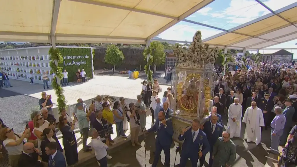 La Virgen permanecerá en el Cementerio de Las Manchas hasta las 16:00 horas, donde los fieles podrán acercarse a visitarla. Así, se estima que sobre las 17:00 horas llegue a la Iglesia de San Nicolás de Bari, en El Paso, donde pernoctará este sábado.