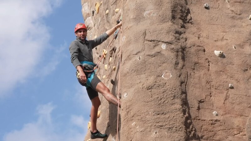 Santi es un joven de treinta años que hace cuatro tuvo un accidente de moto que le hizo estar treinta y siete días sin poder moverse. Los médicos creían que no volvería a andar, pero gracias a su empeño y positivismo ha podido salir adelante. Y no solo eso, ahora hace todo tipo de deportes, entre ellos, la escalada y ya está preparando su próxima ruta hacia Perú, siempre acompañado de sus inseparables muletas y el cariño y apoyo de toda su familia.