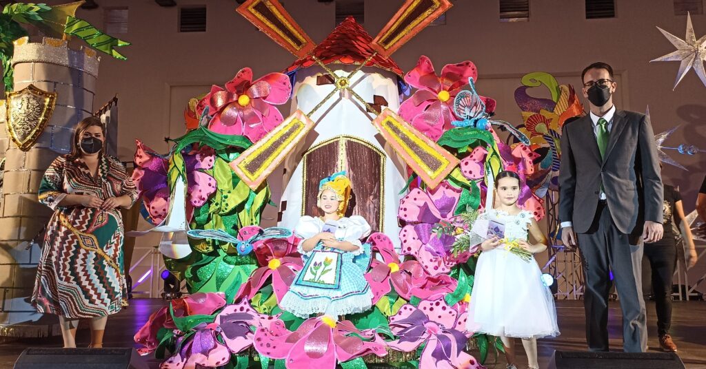 Las tres candidatas desfilaron sus fantasías en una gala llena de ilusión. Además estuvieron acompañadas en el escenario por la reina saliente Lía Gutiérrez García, los niños y niñas de Go & Fun, el músico Güicho